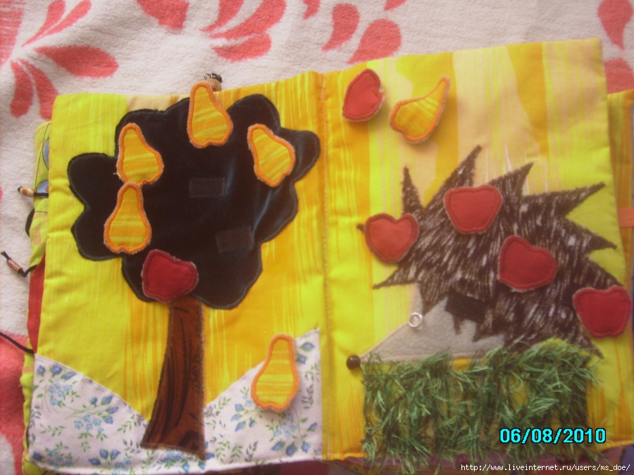 2 разворот: дерево и ёжик, тут всё понятно- яблоки и груши на липе.