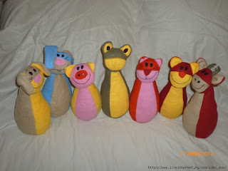 Правда ткань выбрана неудачно-флис, а он тянется. Кегли получились больше, чем хотелось бы...