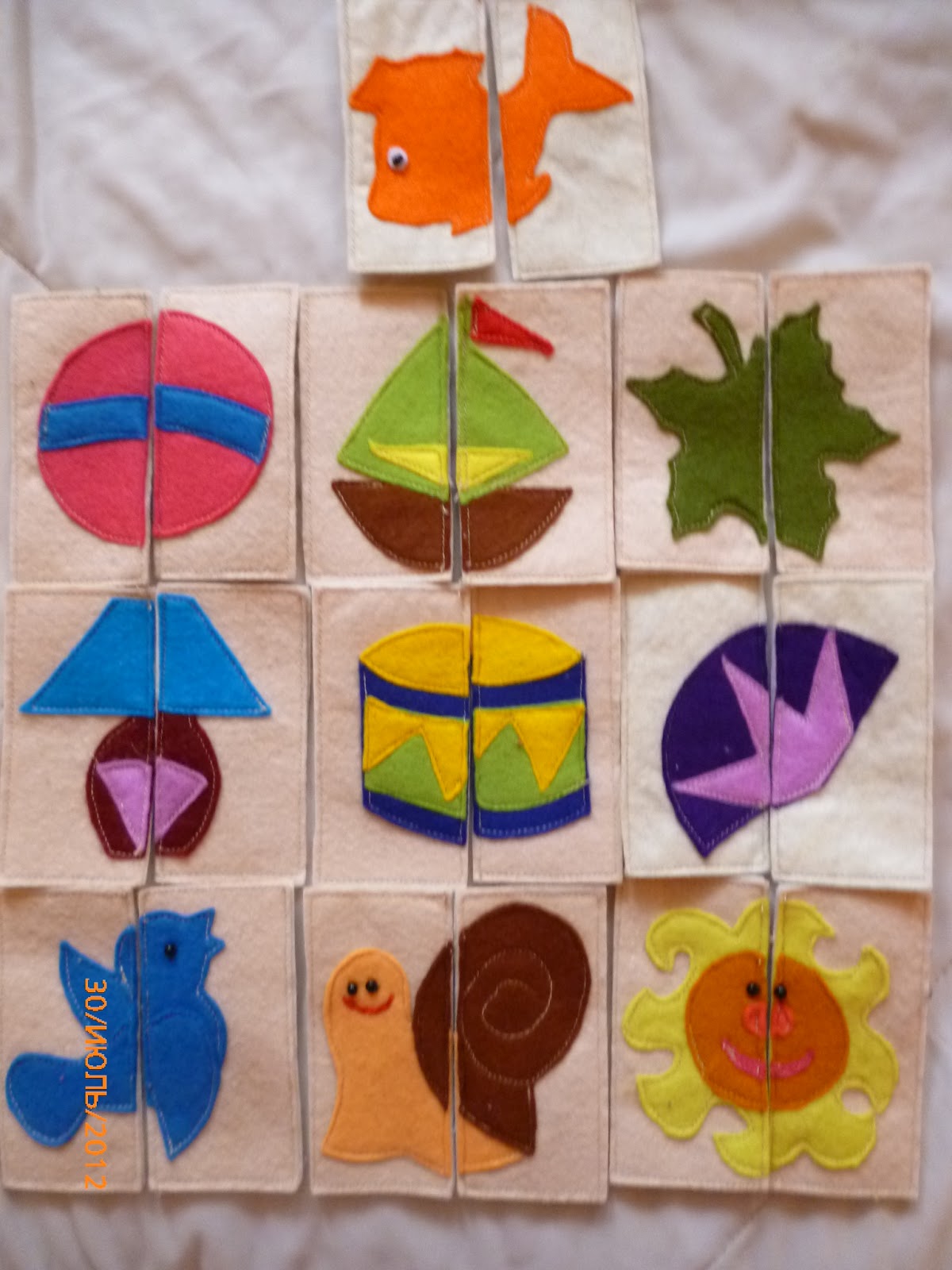 Очень много видела на просторах инета разных пазлов, один у нас уже есть- обьёмный, теперь пришла очередь плоских. На одной стороне я сделала цветные картинки, а на другой решила сделать геометрические фигуры- остались от геометрии ( не пропадать же добру). По моему хорошая игрушка получилась, правда, нам ещё рановато- не заинтересовывает пока.