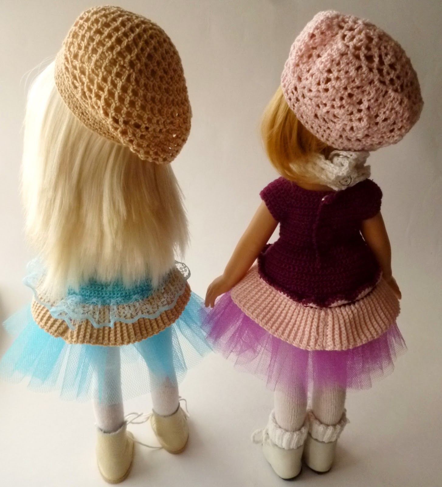 Первыми у нас появились Даша и Клаудия и первыми нарядами для них были костюмчики,связанные в СП с Юлией Симбирцевой.
